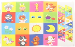 Magnetyczna układanka konstrukcyjna zawiera 72 elementy w różnych kolorach i kształtach, w tym wesołe naklejki. Zapakowana w pudełko. Wymiary opakowania ok. 40×29×6 cm. Wiek 3+