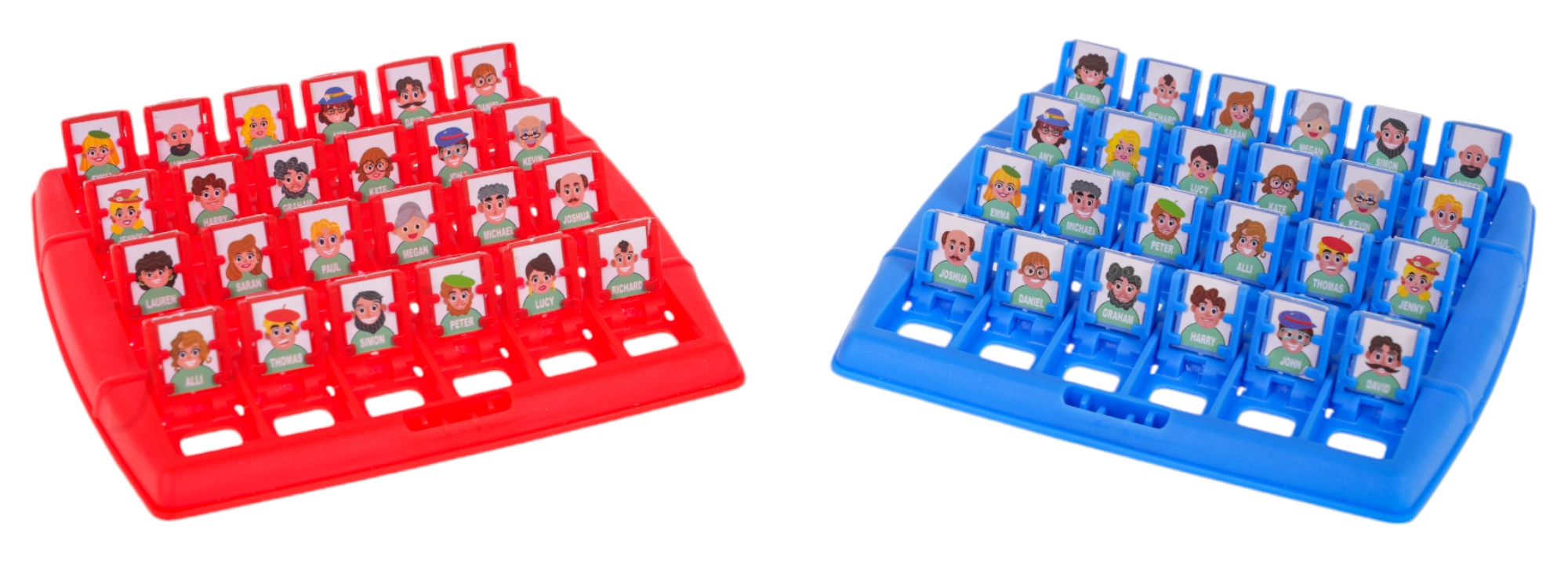 Popularna gra w zgadywanie dla 2 graczy. Każdy gracz ma swoją planszetkę z odchylanymi okienkami i tajnie wybraną postacią. Dzięki przemyślanym pytaniom z odpowiedzią „tak” lub „nie” stopniowo zawężasz wybór, aż poprawnie odgadniesz, kogo wybrał przeciwnik. Wariant Pingwin oferuje świeży design i zabawę dla całej rodziny.
