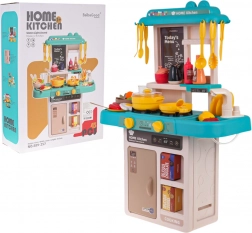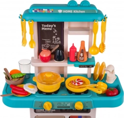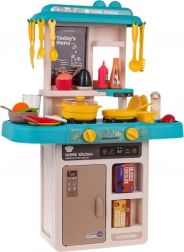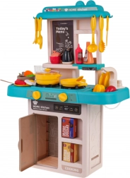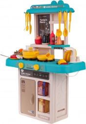 Ta dziecięca kuchnia w modnych odcieniach niebiesko–turkusowych zamieni pokój w małe bistro. Interaktywna płyta grzewcza po przekręceniu pokręteł wydaje dźwięki gotowania i smażenia oraz jednocześnie podświetla palniki. Z kranu naprawdę płynie woda, więc dzieci mogą po „gotowaniu” opłukać naczynia jak w prawdziwej kuchni.