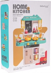 W zestawie znajduje się także przestrzeń do przechowywania z otwieranymi drzwiczkami, zawieszane akcesoria oraz mnóstwo modeli żywności, naczyń i narzędzi kuchennych. Dzięki solidnej konstrukcji z wysokiej jakości plastiku zestaw idealnie nadaje się do codziennej zabawy i wspiera rozwój motoryki małej, wyobraźni oraz umiejętności społecznych.
