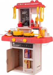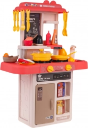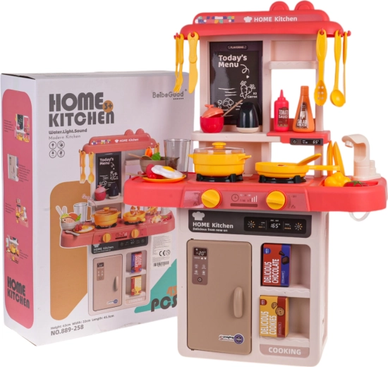 Ta interaktywna kuchnia w żywych kolorach zachwyci każde dziecko. Dzięki podświetlanym palnikom i realistycznym dźwiękom gotowania oraz smażenia zabawa jest maksymalnie wciągająca. Działający kran z wodą pozwala opłukiwać naczynia jak w prawdziwej kuchni, a do „lodówki” z półkami można zajrzeć i schować produkty.
