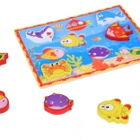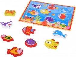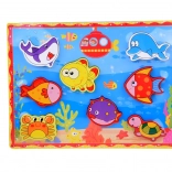 Zabawa doskonale trenuje cierpliwość i koordynację oko–ręka. Dzieci dopasowują kształty do odpowiednich obrazków, wzmacniają koncentrację i poszerzają słownictwo o nazwy zwierząt, takich jak ryba, rekin, krab czy żółw.