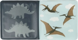 Ta wodoodporna książeczka do kąpieli zapewnia dzieciom zabawę i zachęca do odkrywania. Kolorowe ilustracje dinozaurów wspierają rozwój wyobraźni i percepcji sensorycznej, a miękkie wykonanie jest bezpieczne i przyjemne w dotyku.
