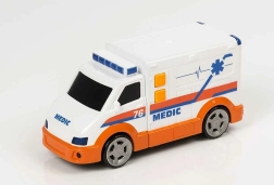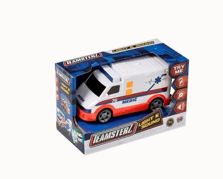 Wyrusz na misję ratunkową z ambulansem TEAMSTERZ o długości 16 cm. Oferuje efekty świetlne, realistyczne dźwięki i działający kogut, które pobudzą dziecięcą wyobraźnię. Dzięki wysokiej jakości wykonaniu z plastiku i praktycznemu rozmiarowi to idealny wybór dla małych ratowników od 3 lat.