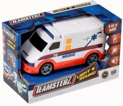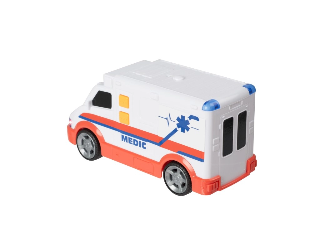 Ta szczegółowo wykonana karetka TEAMSTERZ dostarcza dzieciom autentycznych wrażeń z akcji. Po naciśnięciu przycisku włącza się kogut i rozbrzmiewają realistyczne dźwięki – uruchamianie silnika, wyjazd do interwencji oraz syrena podczas szybkiej jazdy. Doskonała zabawka rozwijająca wyobraźnię i odgrywanie ról.