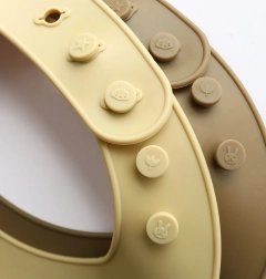 Wodoodporny silikon wystarczy przetrzeć lub opłukać. Śliniaki można myć w zmywarce do 70 °C i łatwo zrolować w podróż.