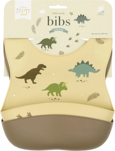 - 2 szt. silikonowych śliniaków (1x z motywem dinozaurów, 1x jednokolorowy)