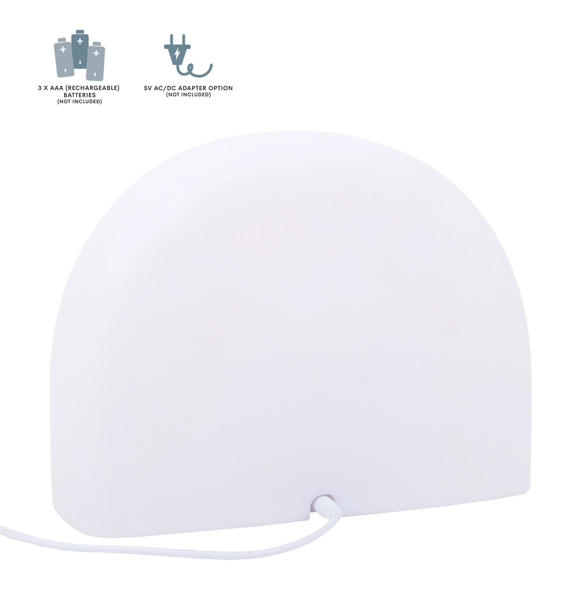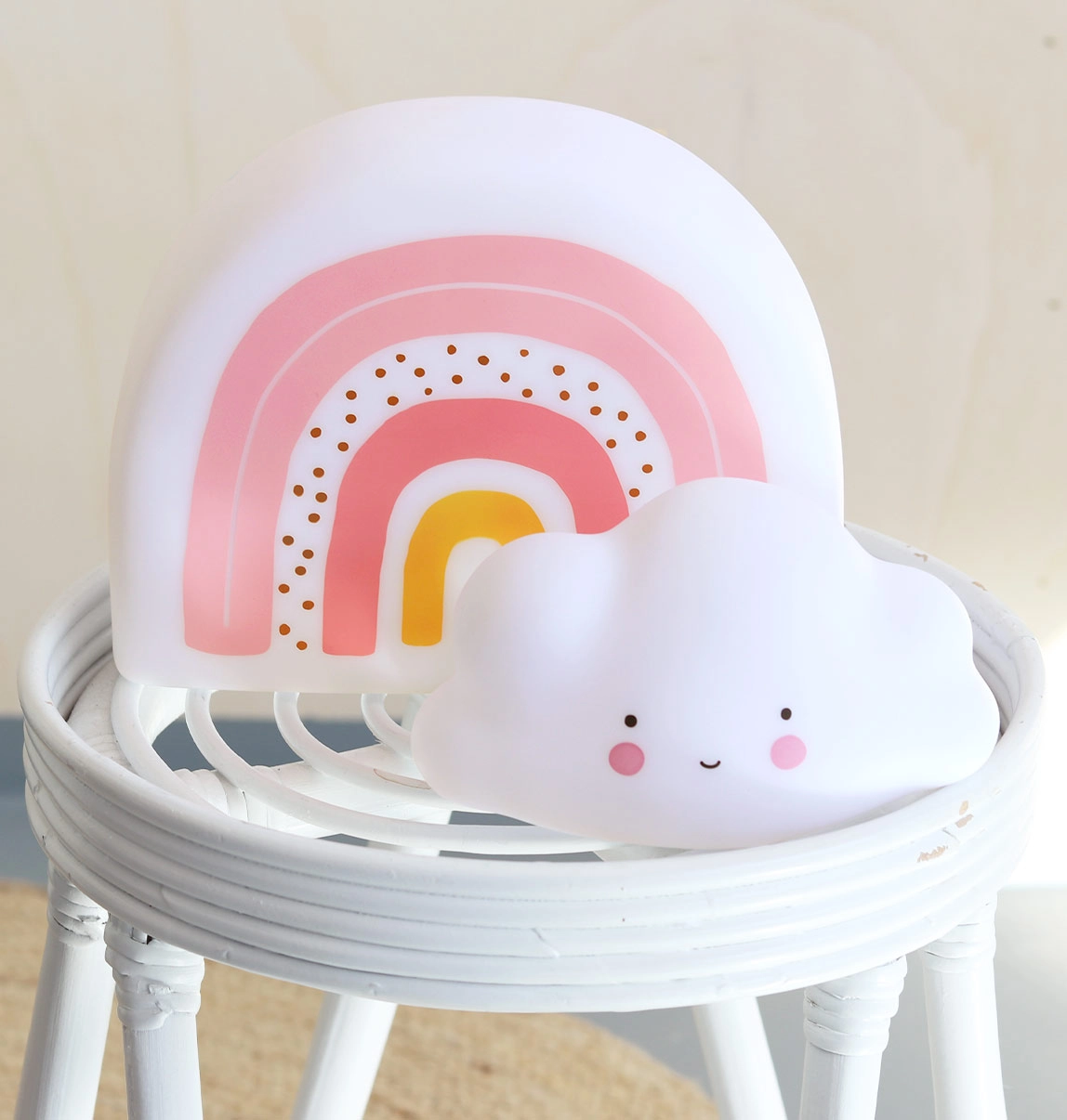 Urocza lampka nocna w kształcie różowej tęczy zapewnia delikatne i kojące światło sprzyjające spokojnemu zasypianiu dzieci. Jest bezprzewodowa, nie nagrzewa się i dzięki timerowi 15 minut oszczędza baterię. Świetna jako dekoracja do pokoju dziecięcego i w podróży.