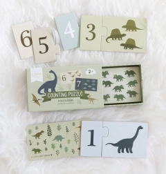 Zabawne edukacyjne puzzle, które uczą dzieci od 2 lat liczenia. Zawierają 10 dwuelementowych układanek, w których dzieci dopasowują liczby do obrazków dinozaurów. Duże i solidne elementy z kartonu ułatwiają manipulację małym rączkom, a praktyczne pudełko zapewnia łatwe przechowywanie.