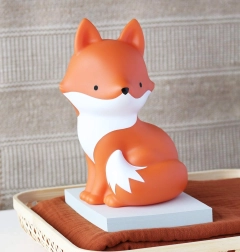Skarbonka w kształcie lisa daje radość i zabawę w pokoju dziecięcym czy bawialni.