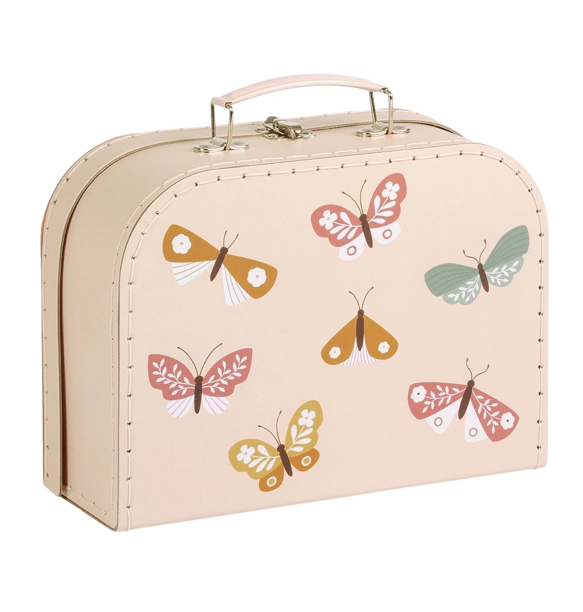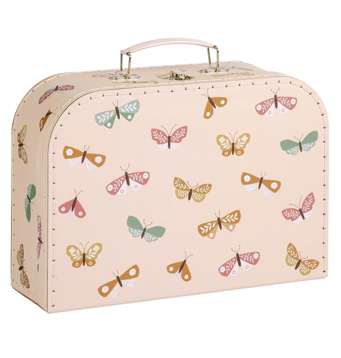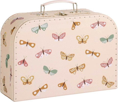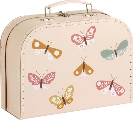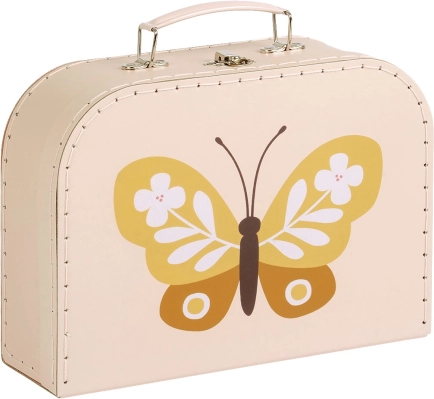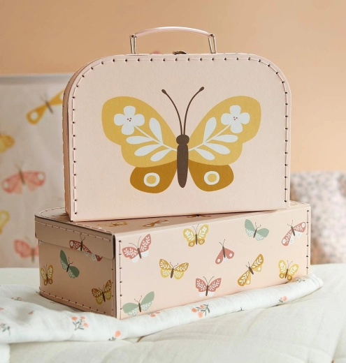 Praktyczny i stylowy zestaw dwóch kuferków w subtelnym beżowym odcieniu z kolorowymi ilustracjami motylków wprowadzi porządek i radość do codziennego użytkowania. Większy i mniejszy kuferek posłużą na zabawki, kredki, zeszyty, drobne skarby lub jako dekoracyjne pojemniki do pokoju dziecięcego.