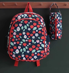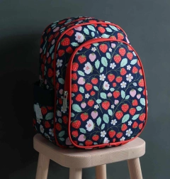 Stylowy dziecięcy plecak z motywem truskawek jest idealny do przedszkola, szkoły i na wycieczki. Oferuje pojemną główną komorę, izolowaną przednią kieszeń na przekąskę, boczne kieszenie na butelkę oraz wyściełane szelki z paskiem piersiowym dla wygodnego i bezpiecznego noszenia.
