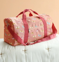 Lekka i wytrzymała dziecięca torba podróżna z motywem motylków oferuje pojemną komorę główną, praktyczne kieszenie oraz odpinany pasek na ramię. Idealna na zajęcia, wycieczki oraz jako bagaż podręczny do samolotu.