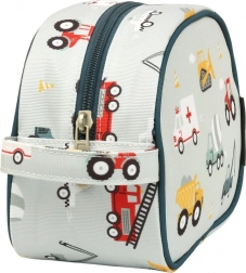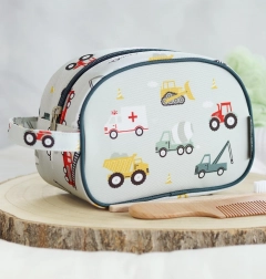 Ta stylowa kosmetyczka A Little Lovely Company z radosnym nadrukiem aut, koparek i innych maszyn utrzyma dziecięce akcesoria higieniczne w porządku. Wykonana z wytrzymałego materiału tekstylnego, ma gładko działający zamek oraz boczny uchwyt do wygodnego noszenia i zawieszania w łazience.