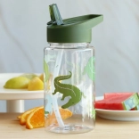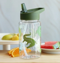 Przezroczysta dziecięca butelka na picie od A Little Lovely Company z zabawnym motywem krokodyli. Jest nieprzeciekająca, lekka i idealna do przedszkola, na plac zabaw i wycieczki. Pojemność 450 ml, wytrzymały materiał Tritan z wieczkiem i słomką dla wygodnego picia.