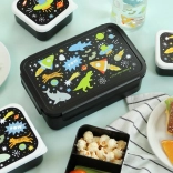 Stylowe dziecięce pudełko na śniadanie z motywem kosmosu idealnie sprawdzi się do szkoły i na wycieczki. Ma hermetycznie zamykaną, zatrzaskiwaną pokrywkę, wyjmowany pojemnik z dwiema przegródkami oraz pojemność 1,2 l dla czytelnego i świeżego przechowywania przekąsek przez cały dzień.