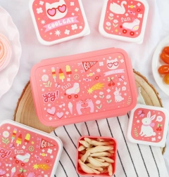 Dziecięcy lunchbox A Little Lovely Company to świetny wybór do codziennego użytku. Praktyczna pokrywka na zatrzask utrzymuje zawartość świeżą i bezpiecznie zamkniętą, a wyjmowana tacka z dwiema przegrodami pomaga oddzielić poszczególne części posiłku. Dzięki pojemności 1,2 litra zmieści wszystko: od kanapek po owoce i przekąski.