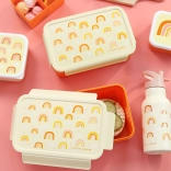 Praktyczne dziecięce pudełko na przekąski z motywem tęczy jest idealne do szkoły i na wycieczki. Dzięki hermetycznej, zatrzaskowej pokrywie oraz wysuwanej wkładce z dwiema przegrodami jedzenie pozostaje świeże i przejrzyście uporządkowane przez cały dzień. Pojemność 1,2 l oferuje dość miejsca na urozmaiconą przekąskę, którą dzieci pokochają.