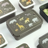Ten praktyczny lunchbox z motywem zwierząt z sawanny ucieszy dzieci i rodziców. Dzięki niezawodnej, zatrzaskowej pokrywce zawartość się nie wysypie i pozostanie dłużej świeża. Wyjmowana tacka z dwiema przegródkami pozwala łatwo oddzielić owoce, kanapkę czy przekąski.