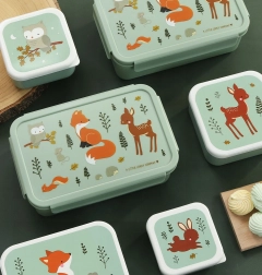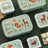 Praktyczne pudełko na drugie śniadanie z motywem leśnych zwierzątek idealnie sprawdzi się do szkoły i na wycieczki. Ma hermetyczną, zatrzaskiwaną pokrywkę oraz wyjmowany pojemnik z dwiema przegródkami dla perfekcyjnej organizacji posiłku przez cały dzień.