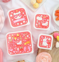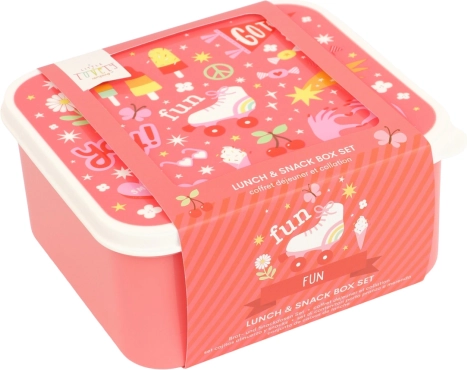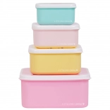 Odkryj praktyczny zestaw 4 pudełek na przekąski od A Little Lovely Company, które dzięki różnym rozmiarom świetnie pomieszczą lunch, owoce, warzywa i drobne smakołyki. Pudełka mają spójny, radosny nadruk i można je łatwo wkładać jedno w drugie, więc w domu zajmują niemal zero miejsca.