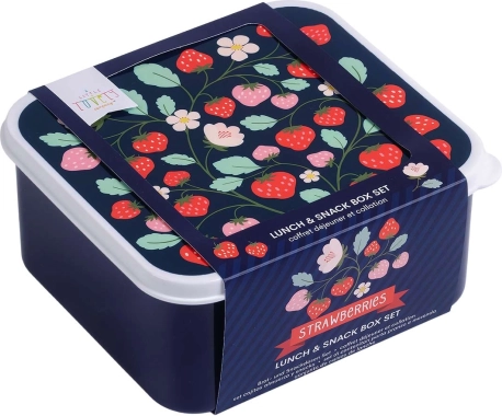 Praktyczny zestaw czterech pojemników śniadaniowych w różnych rozmiarach z motywem truskawek. Pojemniki łatwo się otwierają, można je wkładać jeden w drugi, aby zaoszczędzić miejsce, a wykonane są z wytrzymałego materiału PP – idealne na lunch i przekąski do szkoły, przedszkola oraz na wycieczki.