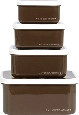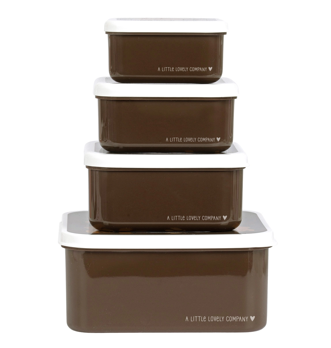 Zestaw 4 pudełek śniadaniowych A Little Lovely Company z motywem niedźwiedzi. Cztery rozmiary, możliwość sztaplowania, łatwe otwieranie. Materiał PP, bez zmywarki i mikrofalówki.
