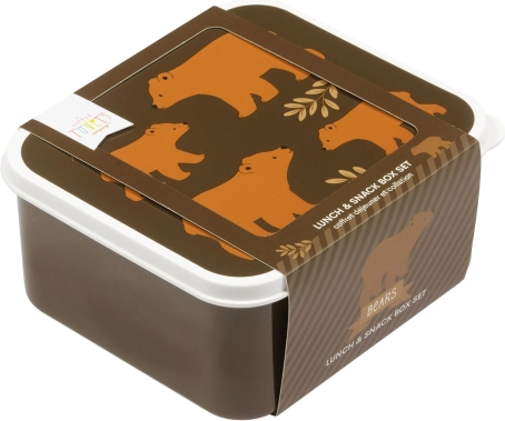 Ten praktyczny zestaw zawiera cztery pudełka na przekąski w różnych rozmiarach, wszystkie z tym samym zabawnym motywem brązowych niedźwiedzi. Dzięki możliwości wkładania pudełek jedno w drugie zaoszczędzisz miejsce w kuchni i plecaku, a także łatwo dobierzesz idealny rozmiar na owoce, ciasteczka czy kanapkę. Odpowiednie do codziennego użytku w domu, w szkole i w podróży.
