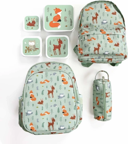 Ten praktyczny zestaw lunchboxów od A Little Lovely Company oferuje figlarny design leśnych przyjaciół w lubianej zielonej wersji. Cztery rozmiary świetnie sprawdzą się na obiad, przekąski, owoce i drobiazgi. Pudełka można łatwo schować jedno w drugie, dzięki czemu zajmują minimum miejsca w szafce.