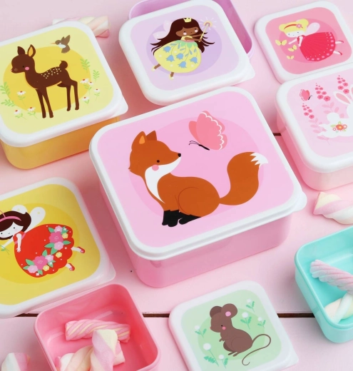 Uroczy zestaw czterech pudełek śniadaniowych A Little Lovely Company z motywem leśnych zwierzątek w różowym kolorze zachwyci dzieci i rodziców. Pudełka mają cztery rozmiary, łatwo się otwierają i zamykają, a także można je praktycznie wkładać jedno w drugie, aby oszczędzić miejsce. Idealne na lunch, przekąski i małe smakołyki do szkoły, przedszkola lub na wycieczki.
