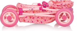 Wózek wspiera rozwój motoryki, koordynacji ruchowej oraz umiejętności społecznych – uczy dzieci troski, empatii i odpowiedzialności. Po zabawie łatwo go złożyć do kompaktowych rozmiarów i odłożyć.