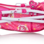 Uroczy motyw jednorożców i miękka budka chronią lalkę i nadają wózkowi bajkowy wygląd.