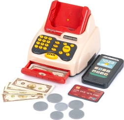 - zawiera 24 sztuki akcesoriów – podkładkę, monety, banknoty, kartę płatniczą, telefon, artykuły spożywcze i inne,
