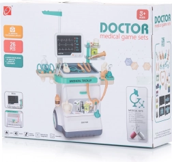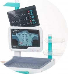 Ten zestaw do zabawy jest idealny dla dzieci, które chcą zostać lekarzami. Zawiera 26 elementów w tym wózek na akcesoria z półkami, panel rentgenowski z podświetleniem oraz inne medyczne dodatki. Dzieci mogą cieszyć się interaktywną grą z dźwiękami i światłami.