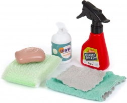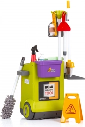Kompletny zestaw do realistycznej zabawy: od miotły i zmiotki z szufelką po ściereczki, spryskiwacz i tabliczkę ostrzegawczą. Dzieci mają wszystko pod ręką na praktycznym wózku.