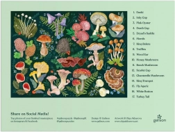- Motyw: Świat grzybów – bogate ilustracje dla miłośników przyrody i mykologii