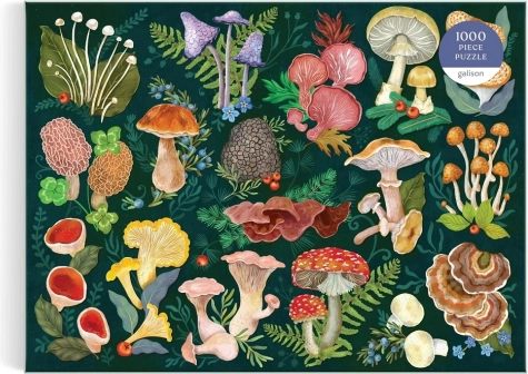 Odkryj urok natury z puzzlami GALISON Świat grzybów o liczbie 1000 elementów. Precyzyjnie wycięte części po ułożeniu tworzą elegancki obraz różnych gatunków grzybów, który zachwyci miłośników przyrody i mykologii. Puzzle są wykonane z materiałów z certyfikatem FSC i drukowane nietoksycznymi tuszami, dzięki czemu są przyjazne dla środowiska i Twojego domu. Idealne jako zabawa dla całej rodziny oraz oryginalny prezent.