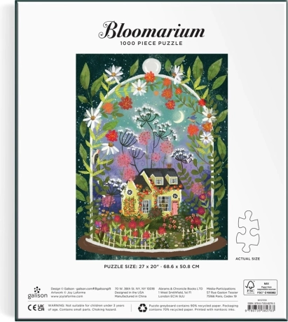 Odkryj urok ciepłej letniej nocy z artystycznymi puzzlami z kolekcji GALISON – motyw autorstwa Joy Laforme przeniesie Cię do domku pośrodku rozkwitającego ogrodu. 1000 elementów pełnych kolorów i detali gwarantuje przyjemny relaks, a gotowy obraz stanie się stylowym dodatkiem do wnętrza. Wykonano z certyfikowanych FSC i materiałów z recyklingu, zadrukowano nietoksycznymi farbami – świetny wybór dla miłośników jakościowych i zrównoważonych puzzli.