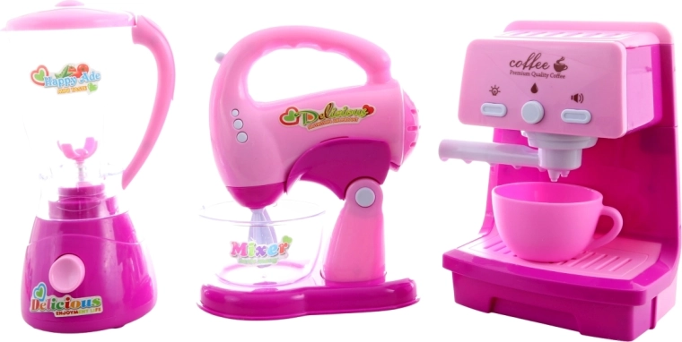 W zestawie znajduje się ekspres do kawy z filiżanką, blender kielichowy z przezroczystym dzbanem oraz mikser ręczny z miską. Każde urządzenie jest zasilane 2× bateriami AA (brak w zestawie). Cały zestaw zapakowany jest w pudełko prezentowe o wymiarach ok. 43 × 22 × 10 cm.