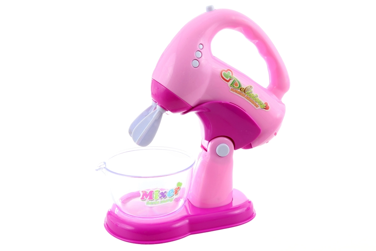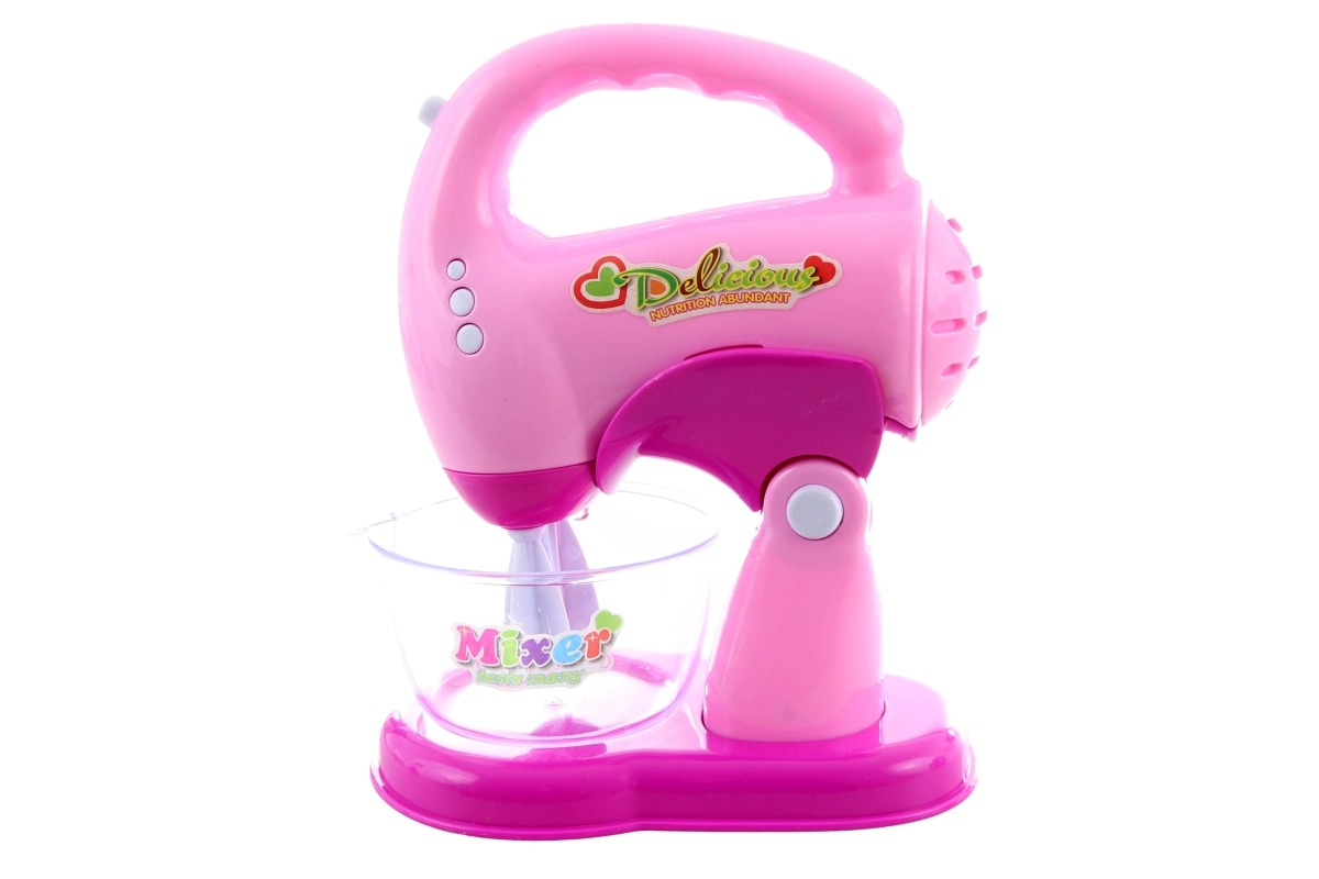 Mikser ręczny z trzepaczką i miską obraca się, świeci i wydaje dźwięki. Dzieci mogą „ubijać” kremy i ciasta jak w prawdziwej kuchni.