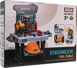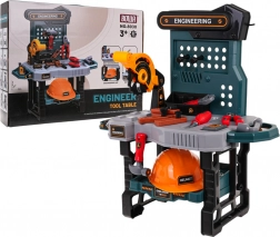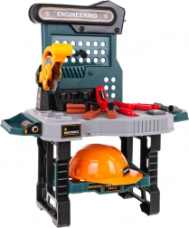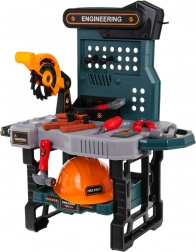 Bogata dziecięca pracownia z kaskiem, piłą tarczową i akcesoriami dla dzieci od trzech lat. Zawiera 37 realistycznych elementów do kreatywnej zabawy i rozwoju umiejętności motorycznych.