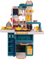 Dziecięca kuchnia jest wykonana z wysokiej jakości plastiku i jest dostępna w żywych kolorach, które wspierają kreatywność dziecka. Zawiera interaktywną płytę kuchenną z obrotowymi gałkami, które wydają dźwięki gotowania i smażenia, a przy użyciu zapalają się palniki. Składa się również z symulacji zimnej pary i realistycznej bieżącej wody z kranu do mycia naczyń.