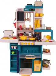 Interaktywna kuchnia dla dzieci oferuje realistyczną zabawę z efektami świetlnymi, dźwiękami gotowania i smażenia, prawdziwą płynącą wodą z kranu oraz bezpieczną parą z patelni, garnka i parowaru do ryżu. Bogaty zestaw 80 elementów rozwija wyobraźnię, małą motorykę i kreatywność dzieci od 3 lat.