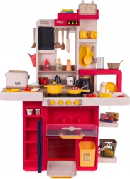 Ta bogato wyposażona interaktywna kuchnia zachwyci każdego małego kucharza. Dzięki podświetlanym palnikom, autentycznym dźwiękom gotowania i smażenia oraz efektowi bezpiecznej pary wodnej zabawa wygląda jak prawdziwa. Działający kran z cyrkulacją wody pozwala myć naczynia jak w prawdziwym zlewie, a otwierany piekarnik i „lodówka” poszerzają pole do wyobraźni.