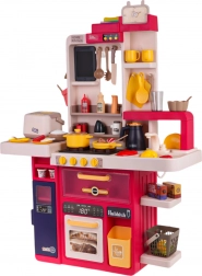 W zestawie znajduje się panel muzyczny z melodiami i dźwiękami okapu, tabliczka kredowa na wiadomości i przepisy oraz specjalny parowar do ryżu. Wysokiej jakości, kolorowe wykonanie z trwałego plastiku oraz dopracowane detale, takie jak obrotowe pokrętła czy zegar z wskazówkami, czynią z tej kuchni świetny prezent.