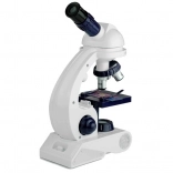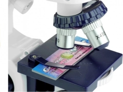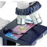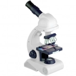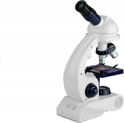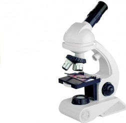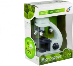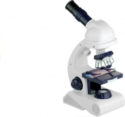 Prezentowane urządzenie będzie doskonałym pomocnikiem w poznawaniu przyrody i biologii. Akcesoria dołączone do zestawu gwarantują udaną i przede wszystkim rozwijającą zabawę. Konstrukcja zabawkowego urządzenia pozwala korzystać zarówno ze światła dziennego, jak i z wbudowanego oświetlenia mikroskopu. Górna część mikroskopu obraca się o 360 stopni, a w uchwycie umieszczono trzy obiektywy o powiększeniach 80x, 200x i 450x. W przedniej części stolika znajduje się obrotowy dysk z czterema filtrami, które zmieniają barwę preparatów. Dodatkową atrakcją zabawki jest regulowane powiększenie lunety.