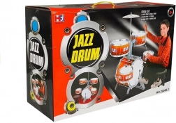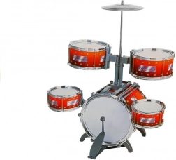Zawiera wielki bęben z pedałem, dwa małe i dwa średnie bębny, talerz, plastikowe pałeczki oraz stołek. Idealny dla małych muzyków.