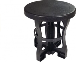 Czarny plastikowy stołek z zaokrąglonymi nogami zapewnia wygodę i stabilność podczas gry. Jest lekki i łatwy do przenoszenia do różnych zastosowań.