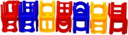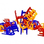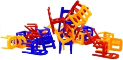.Każdy gracz stopniowo układa jedno krzesło na drugim tak, aby zbudowana wieża się nie rozpadła. Układaj kolorowe krzesła jedno na drugim i stwórz jak największą wieżę. Ten, komu nie uda się utrzymać stabilnej stojącej piramidy, przegrywa. Nie wolno dotykać ani poruszać już ułożonych krzeseł. Wieżę można układać w kilka osób lub samodzielnie.