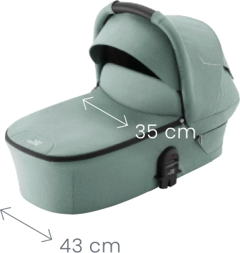 Amortyzowane podwozie, duże gumowe koła odporne na przebicie oraz kompaktowa szerokość 57 cm dla płynnego manewrowania w mieście i w terenie. Dodatkowa budka z UPF 50+ i pojemny kosz o nośności 7 kg.
